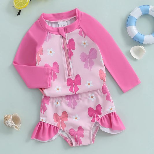 UPF50 Girls Swimwear Long Sleeves Floral Baby Swimsuit UV Protection Children's Swimming Suit Beach Summer Toddler Bathing Suit