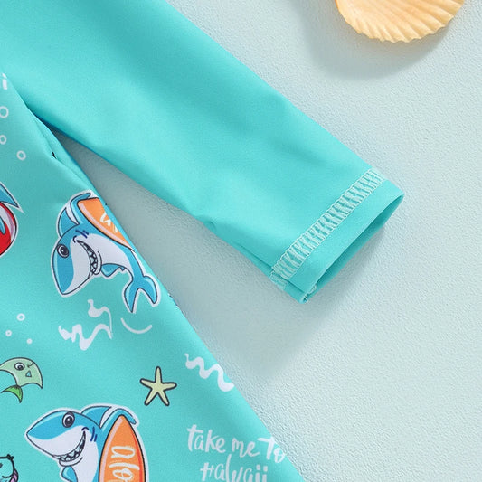Baby Boys Rash Guard Swimsuit Rompers Zipper Long Sleeve Shark Print Toddler Bathing Suit Swimwear