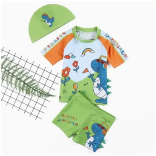 Children's Split Bathing Suit Toddler Boys 3PCS Cute Cartoon Pattern Short Sleeve Swimming Set For 1-12Years Kids Beach Wear
