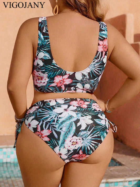 Print Strapped 2 Piece Plus Size Bikini Women High Waist Curvy Swimsuit Brazilian Lady Beach Big Bathing Suit