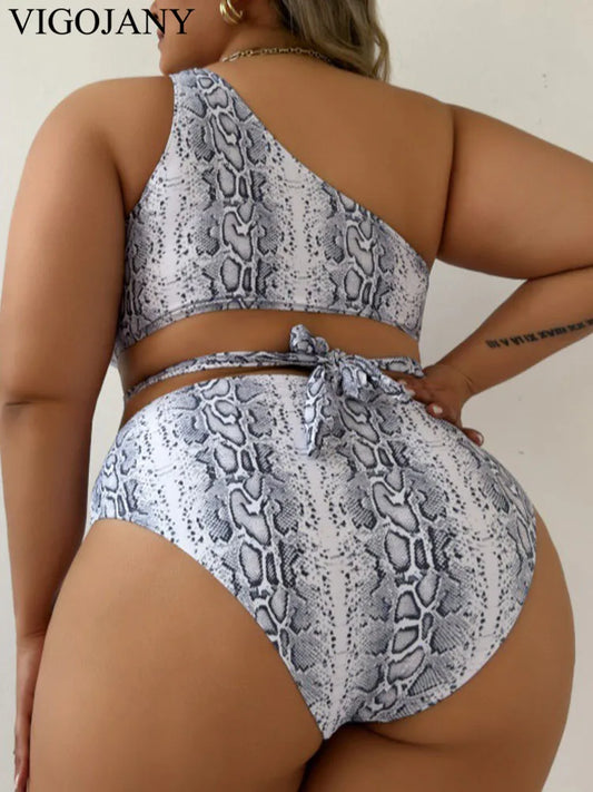 2 Piece Plus Size Bikini Women One Shoulder Swimsuit Cross Hollow Swimwear Brazilian Lady Bathing Suit