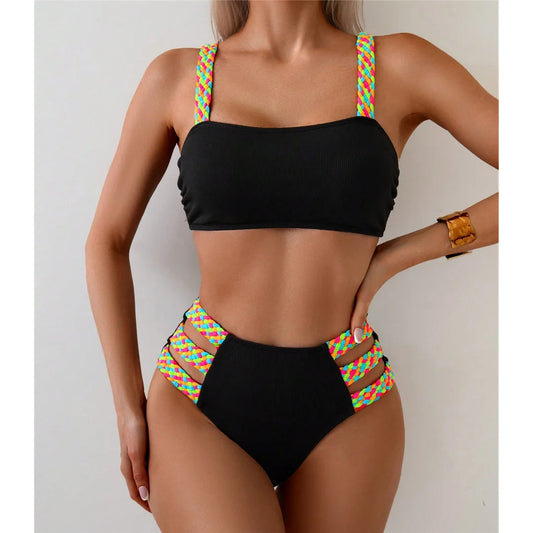 S - XL Splicing Cut Out High Waist Bikini Female Swimsuit Women Swimwear Two-pieces Bikini set Bather Bathing Suit Swim