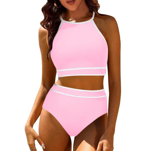 Solid Color Halter Swimwear Women Hollow Push UP Bikini Set High Waist Summer Swimsuit Backless Beach Bathing Suit