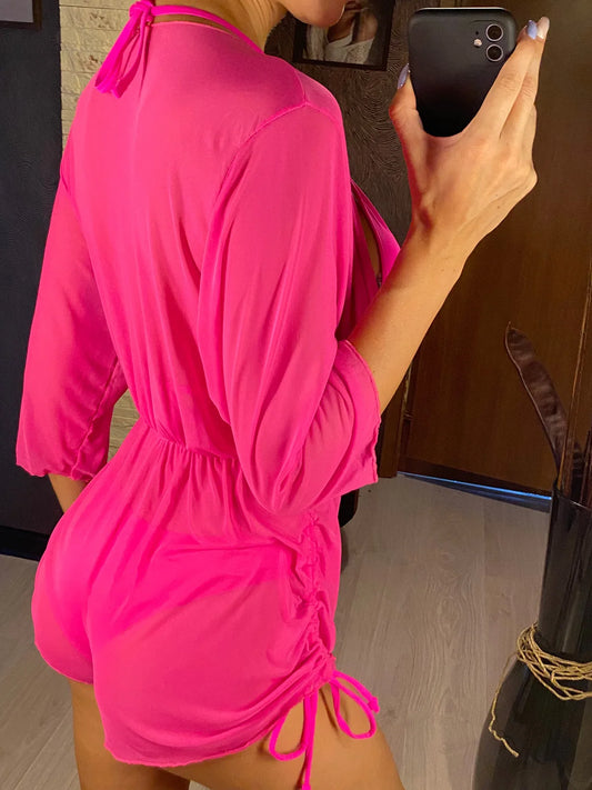 Sexy Coffee Coloured Halter Pleated Bikini Set Women