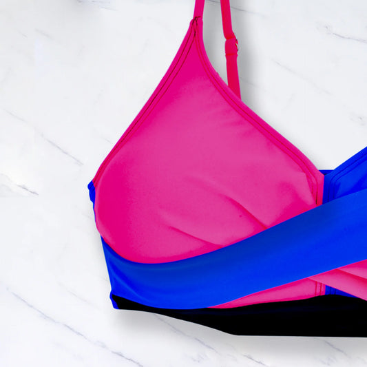 Color Block Bikinis Two Pieces Swimsuit Women Swimwear Beach Wear Bathing Suits Brazilian High Waist Bikini Set