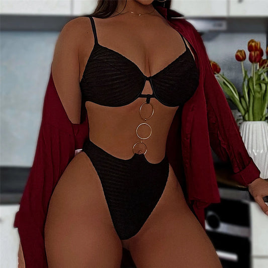 Metal Rings Wrinkled Underwired One Piece Swimsuit Women Swimwear Female Monokini High Cut Leg Bather Bathing Suit Swim