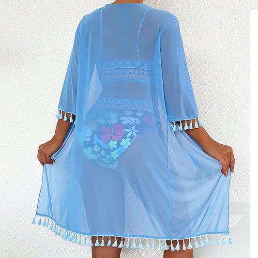4 Piece Bikini Women Drawstring Cover Up Top & Shorts Swimsuit Female Halter Swimwear Bathing Swimming Mesh Beachwear Suit
