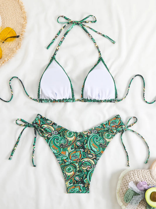 Halter Triangle Bikinis Printed Swimsuit Women String Swimwear Female Bathers Swimming Bathing Swimming Swim Suit