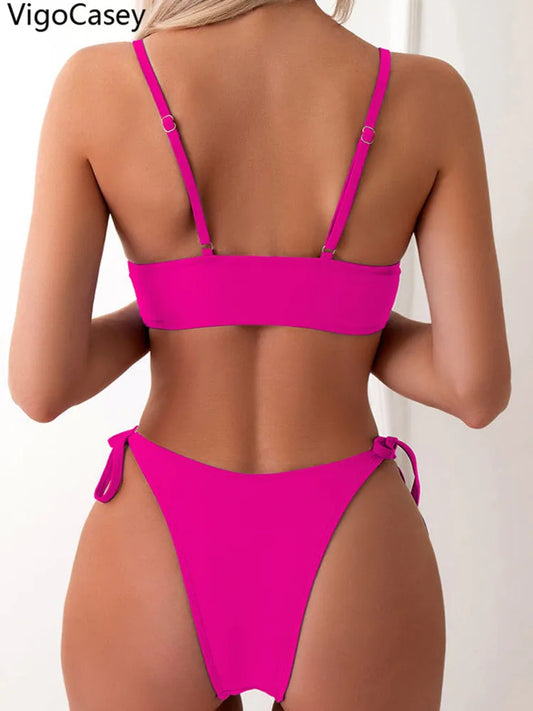 Strappy Bikini Set Swimsuit Women Solid Padded Swimwear Female Bathers Bathing Swimming Swim Suit Beachwear