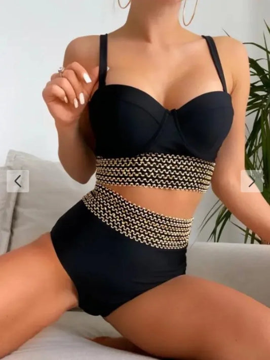 Push Up High Waist Bikini Sets Black Bikini Swimsuit Two Pieces Swimwear Women Bathing Suits Beachwear Bathers