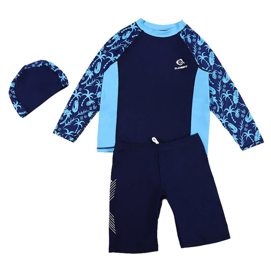 Kids Boys Quick-Dry 3 Piece Rash Guard Swimming Bathing Suit Long Sleeve Swim Tops with Hat Elastic Waistband Trunks Swimsuit