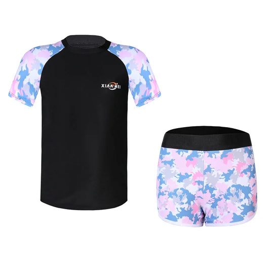 Children's Camouflage Print Swimsuit, Two Pieces Swimsuit, Sports Swimwear, Korean Version, Girls Fashion
