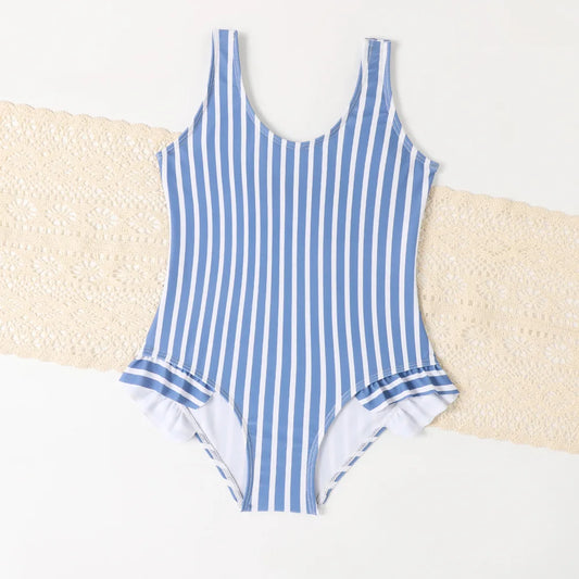 Teenage Girls Striped Ruffle One Piece Swimsuit 7-12 Years Retro Children's Swimwear Teens Bathing Suits for Kids Beachwear