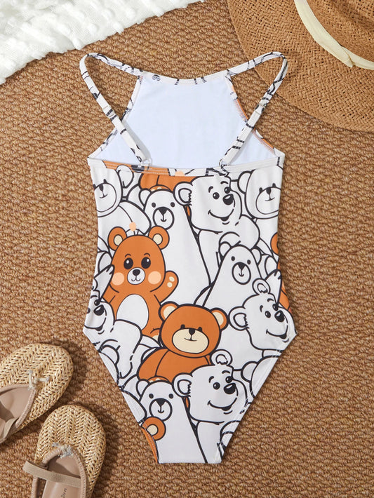 Printed Girls Swimsuit One Piece Kids Strappy Swimwear Children Swimming Bathing Swim Suit Beachwear