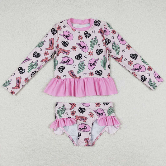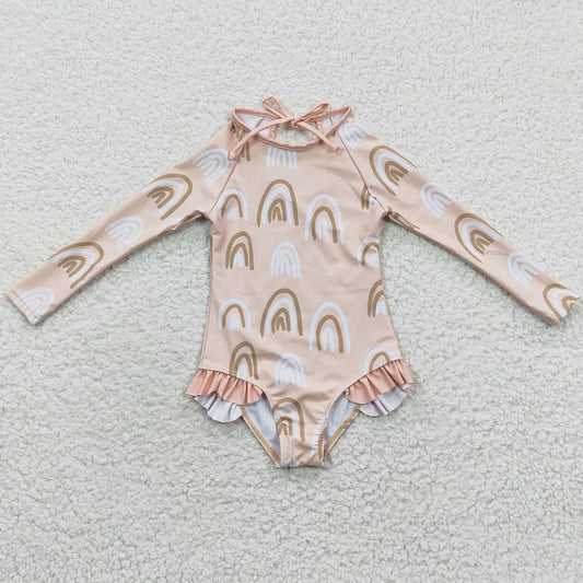 Colourful Designs Baby Girls Swimsuits Long Sleeve One Pieces Swimsuit Summer Fashion Kids Clothes Swimwear Boutique Girls Swim Clothes