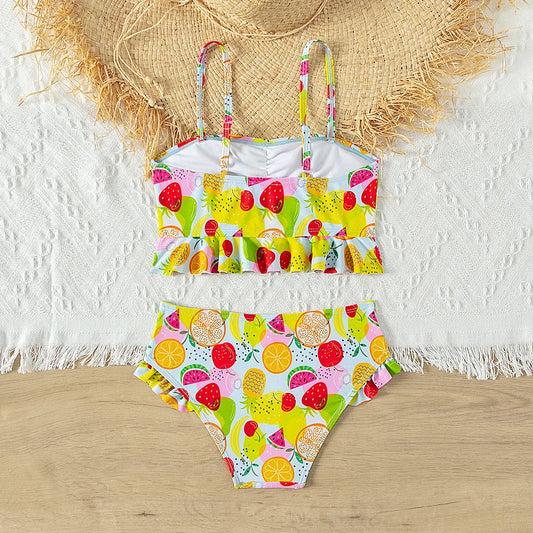 Summer Girls Fruit Printing Bikini Swimsuit Teen Girls 5-14 Years Two Piece Swimwear Candy Colorful Bathing Suit