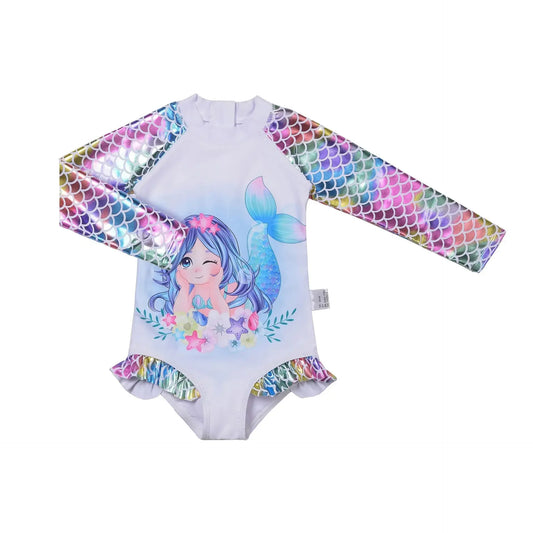 Girls One-piece Swimsuit Mermaid Cute Sunscreen Baby Girl Quick-drying Children's Swimsuit Long Sleeves Swim Wear for Hot Summer