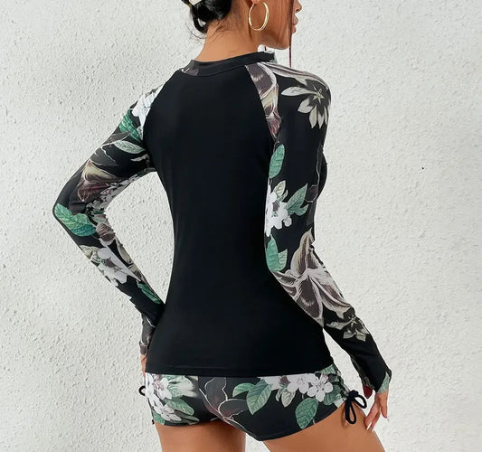 Long Sleeves Surfing Swimsuit Print Swimwear Women Two Pieces Swimming Clothes Beachwear Bathing Swimming Swim Suit
