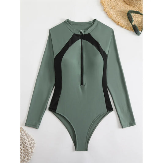 Long Sleeve Surf Swimsuit Swimwear Women Zipper One Piece Rash Guard