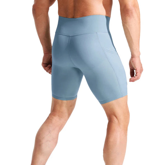 Running Shorts Pants Pockets Men's High Waist Elastic Running Tights Cycling Fitness Yoga Quick Drying External Wear Marathon