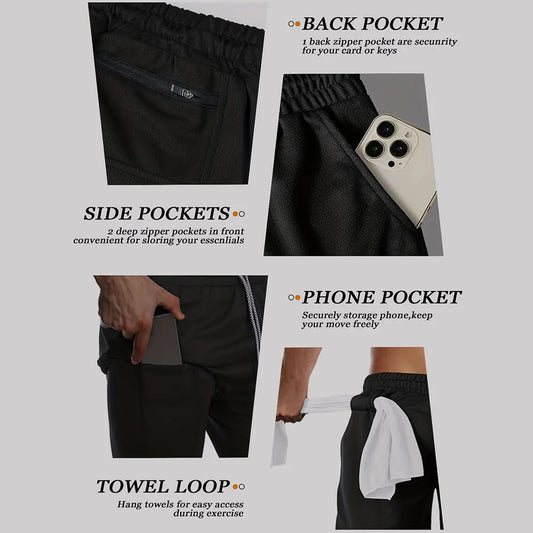 Summer Mens Shorts Running Shorts Men Fitness Training Shorts with Zipper Pocket Jogging Sport Short Pants Workout Gym Shorts