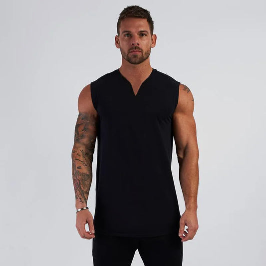Cotton V-neck Fitness Tank Top Men Summer Muscle Vest Gym Clothing Bodybuilding Sleeveless Shirt Workout Sports Singlets