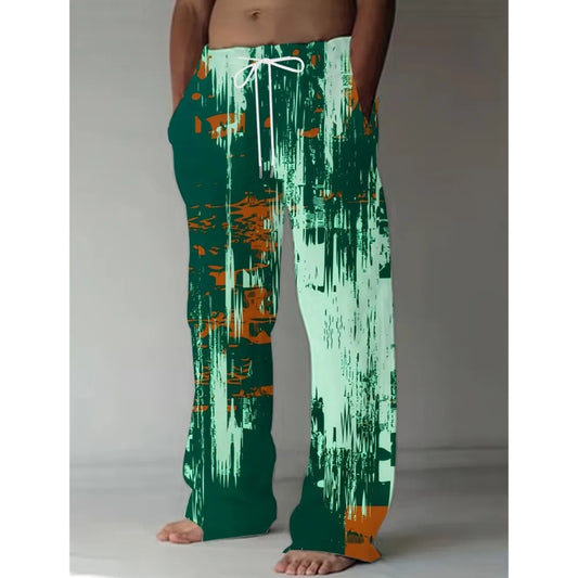 Men's Pants Summer Holiday Street Beach Pants Drawstring Pocket Casual Pants Abstract Texture Printed Men's Pants