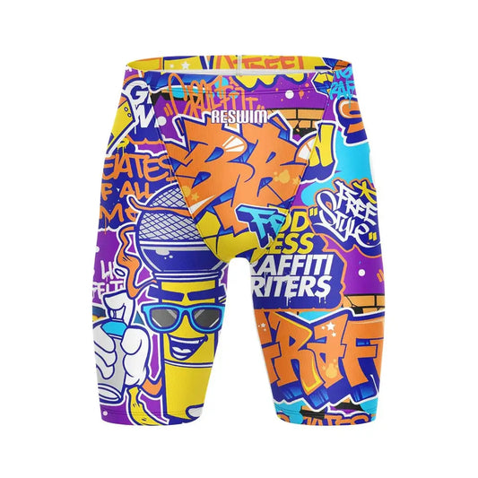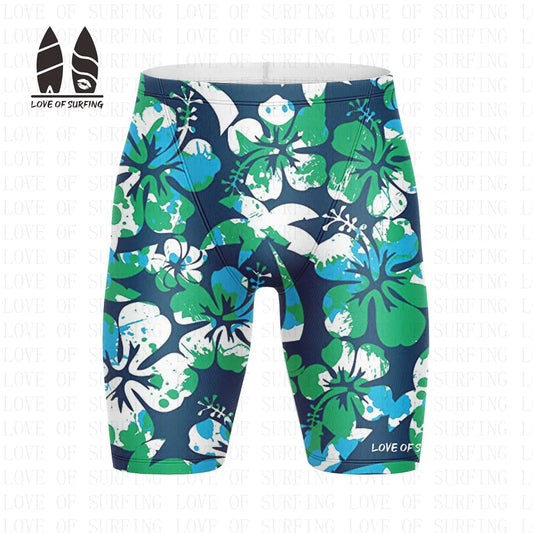 Summer Swim Jammer Quick Dry Swimsuit Print Swimming Beach Tights Shorts Surfing Trunks Men's Swimwear Sports Training Pants