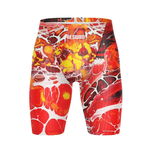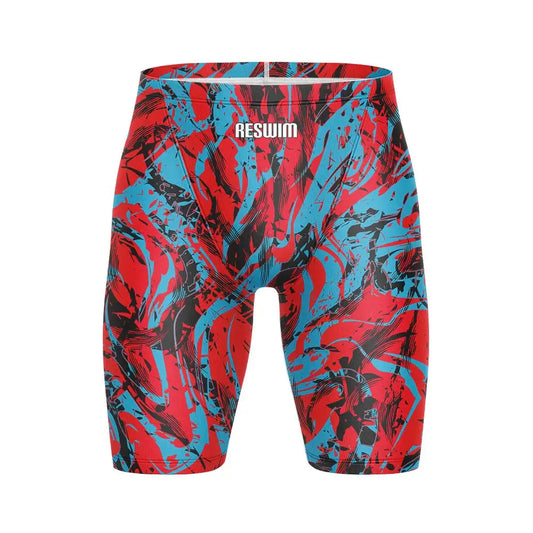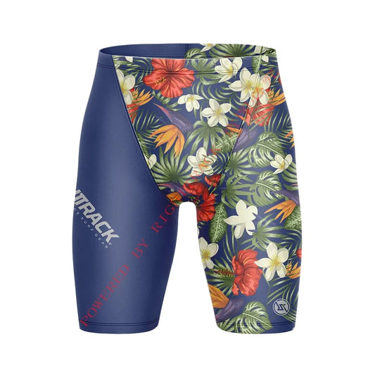 Mens Print Jammer Swimsuit Athletic Training Trunks Bathing Suit Durable Training Swimming Shorts Summer Surfing Diving Swimwear