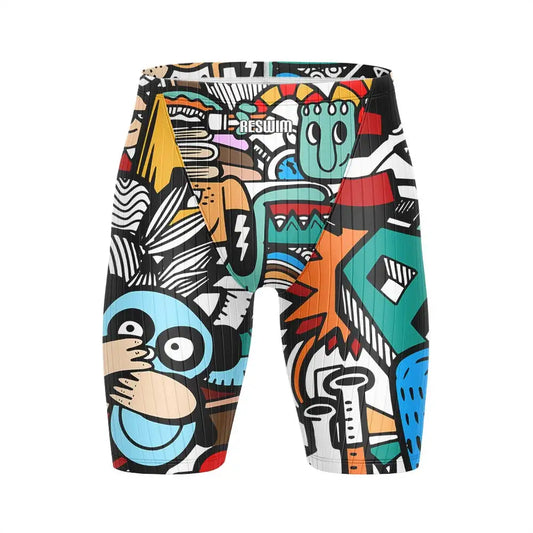 Mens Summer Swim Jammer Quick Dry Swimsuit Print Swimming Beach Tights Shorts Surfing Trunks Men's Swimwear Sports Training Pants