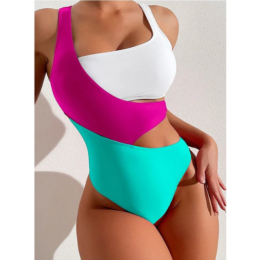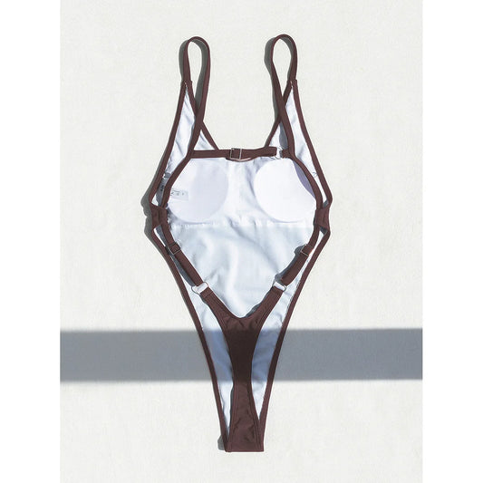 Contrast Color Bikini One Piece Swimsuit Women Hollow Out Beach Bodysuit Slim Fitting Swimsuit Backless Summer Bathing Suit