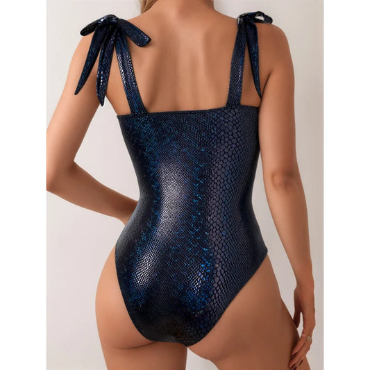 One Piece Swimsuit Women Marble Pattern Sling Lace Up Bodysuit Swimwear Monokini Summer Beach Bathing Suit Female
