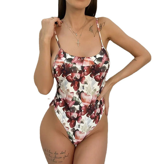 Flower Design Hi Cut One-piece Swimsuit Women's Swimwear Women Bathers Bathing Suit