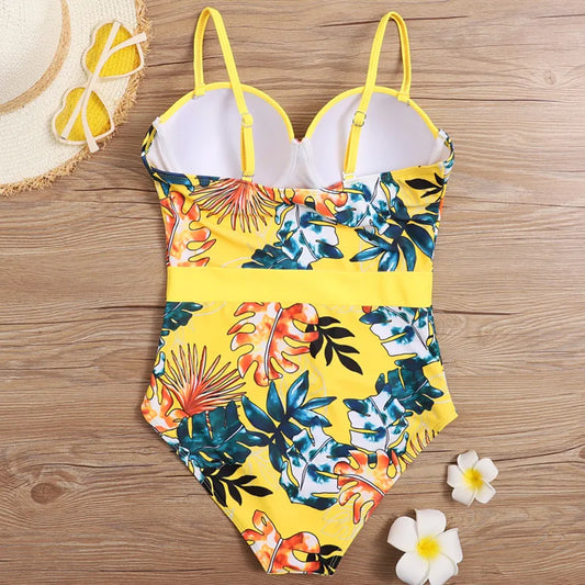 One Piece Swimsuit Women Swimwear Push Up Monokini Plunge Bathing Suit Floral Bodysuit Beach Wear Female Swimsuit