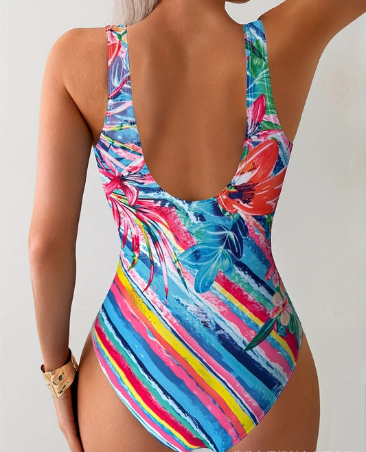 Colorful floral one-piece swimsuit for summer beach wear Integrated tropical summer beach bikini