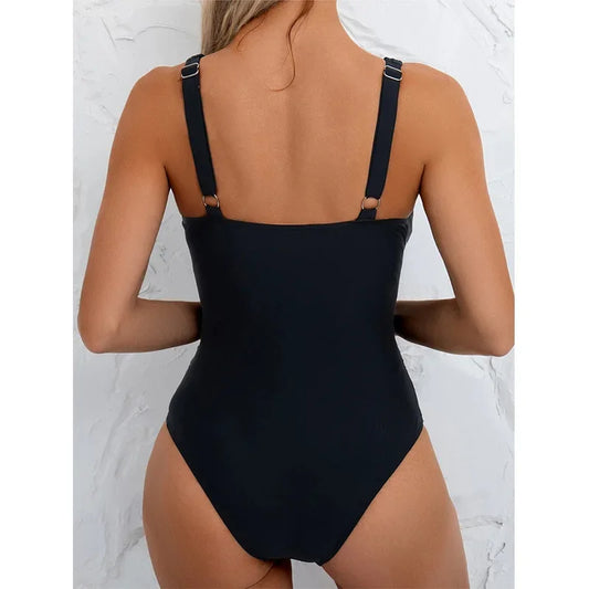 3 Colors One Piece Swimsuit Swimwear Women Deep V-neck Colorful Chain Solid Bathing Suit Beachwear