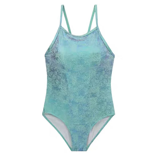 Lake Blue Green Gold Foil One-Piece Swimsuit Surfing Snorkeling Speed Swimsuit Women