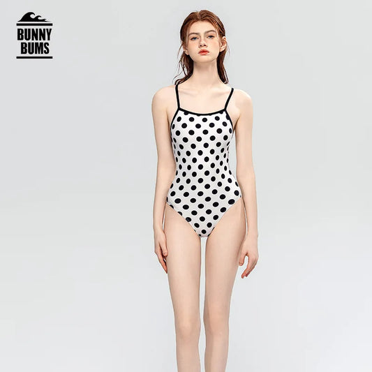 Bunny Bums White with Black Poka Dots One-piece Swimsuit Women Swimwear