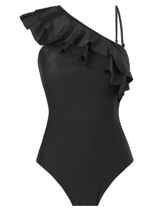 One Shoulder Frill Solid Swimsuit Women One Piece Swimwear Female Beachwear Bathers Bathing Swimming Swim Suit