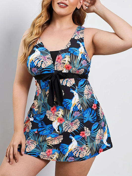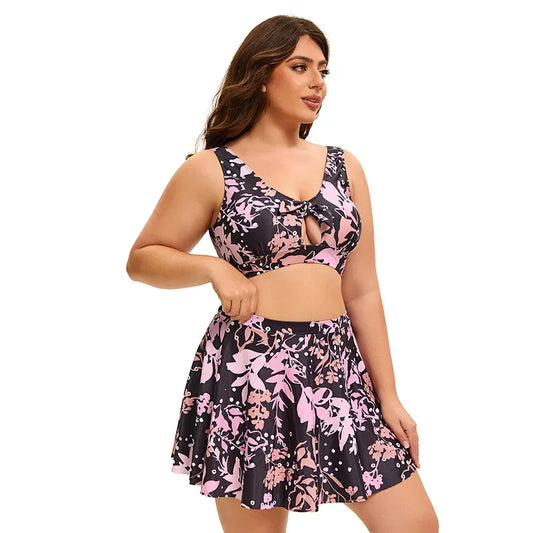 Floral Two Pieces Swimsuit Large Plus Size Tankini Beach Dress Swimwear Women Bathers Swimming Bathing Swim Suit Female