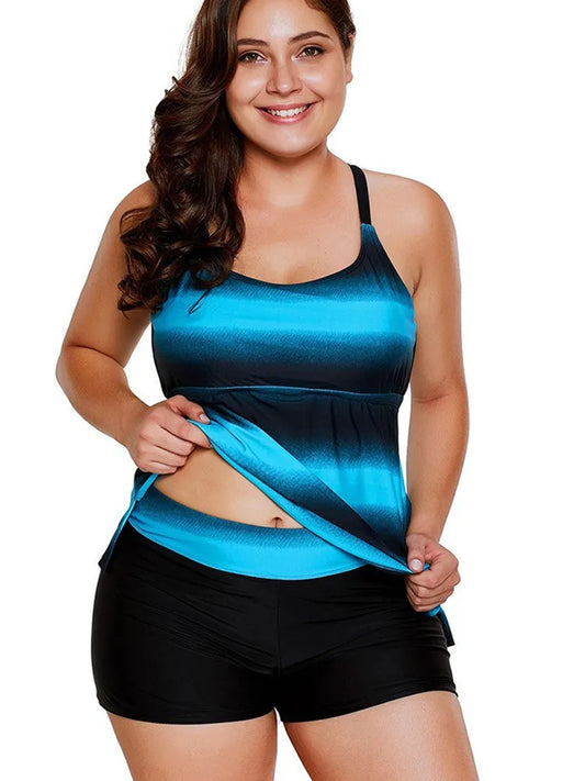 Strapped 2 Piece Plus Size Tankini Set Women Large High Waist Big Swimsuit Lady Brazilian Curvy Bathing Suit