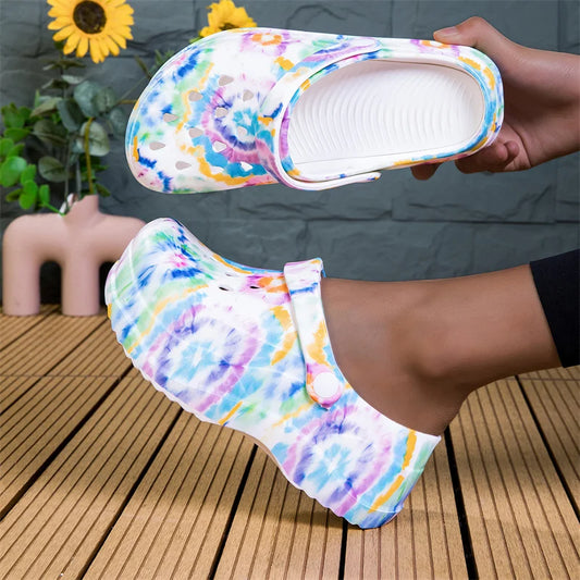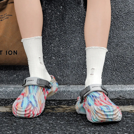 Men's Slippers Summer Soft EVA Beach Hole Shoes Outdoor Women's Slide Non-slip Tie-dyed Designer Personalized Hollow Shoes 36-47
