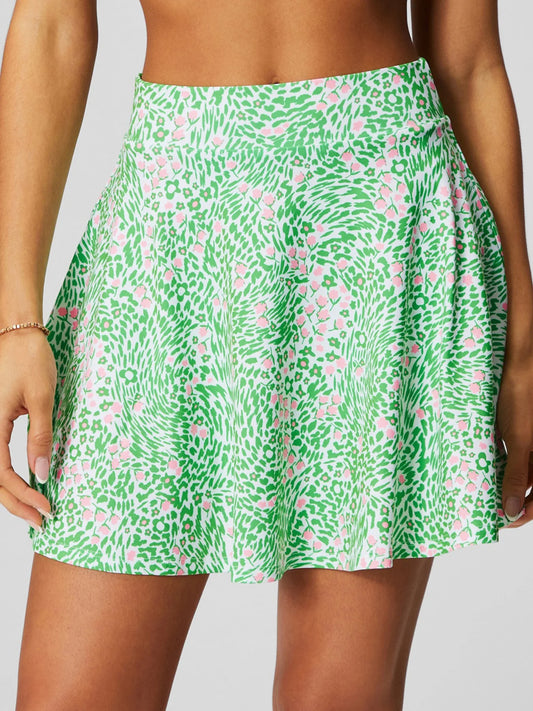 Womens Tennis Skirt with Pockets Green Leaves Print High Waisted Athletic Running Workout 2 in 1 Sports Badminton Golf Skort