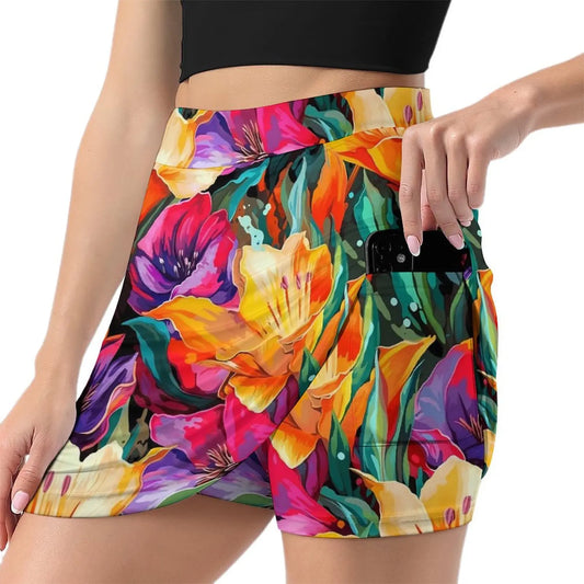 Lily Floral Tulips Skirt Summer Colorful Flowers Fashion Casual A-line Skirts Elegant Mini Skirt Woman Design Oversized Clothing