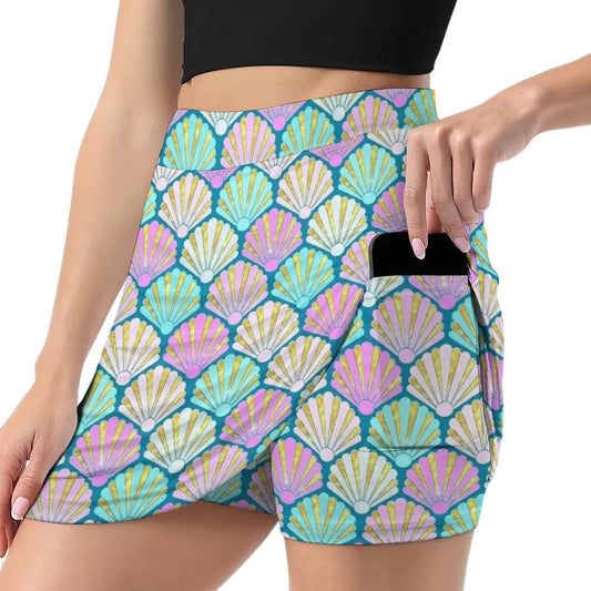 Pink And Teal Sea Shells Skirt Ladies Cute Mini Skirts High-waisted Design Street Wear Casual Skirt Big Size 2XL 3XL