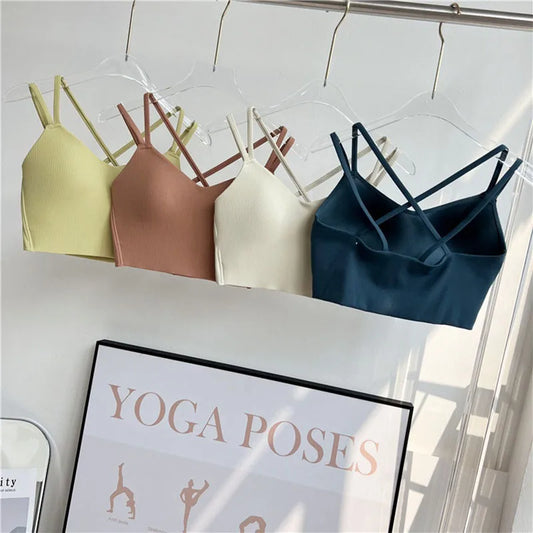 One piece Strappy Yoga Gym Bras Active Wear Women Criss Cross Strap Wireless Sports Bras Top Athletic Brassiere