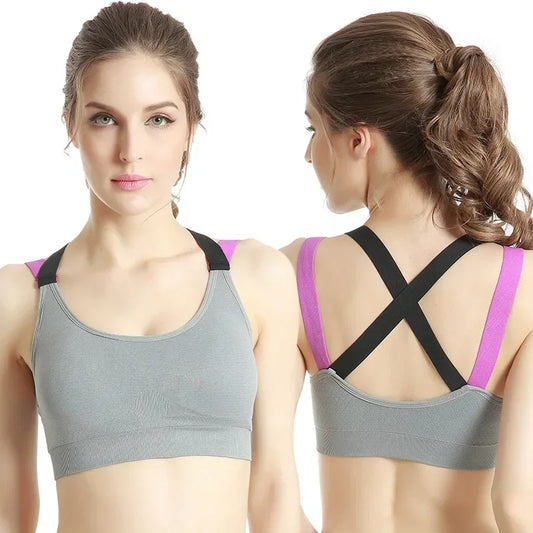 Sports Bra Women Patchwork Cross Back Straps Jogging Gym Crop Top Female Tops Fitness Yoga Shockproof Vest Sport Bras for Women