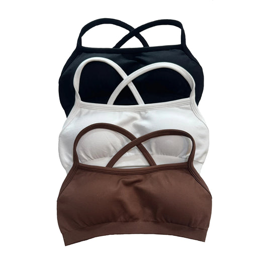 Sports Bra Strappy Backless Yoga Gym Bra Removable Cups Women Workout Clothing Gym Halter Sport Bras Yoga Tank Wrap Top