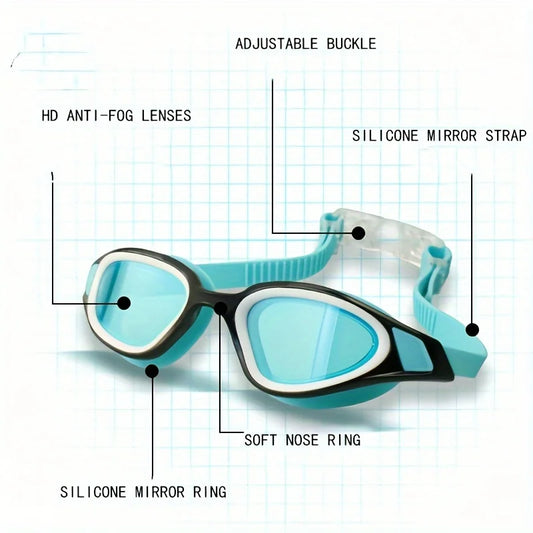 Swimming Goggles HD Anti-Fog Professional Swimming Glasses Silicone Anti-UV Adjustable Swimming Goggles Unisex Adults
