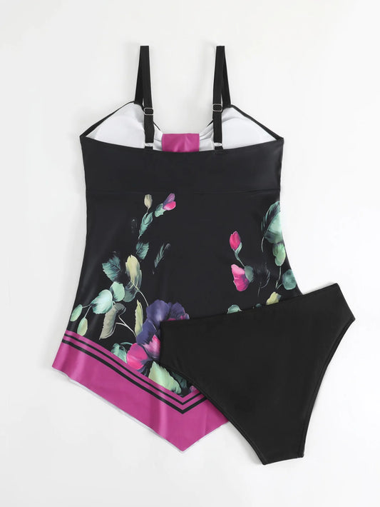 Floral Print Tankini Swimsuits Plus Size Swimwear Women Two Pieces Swimsuit Female Bathing Suit Beachwear Swimming Suit